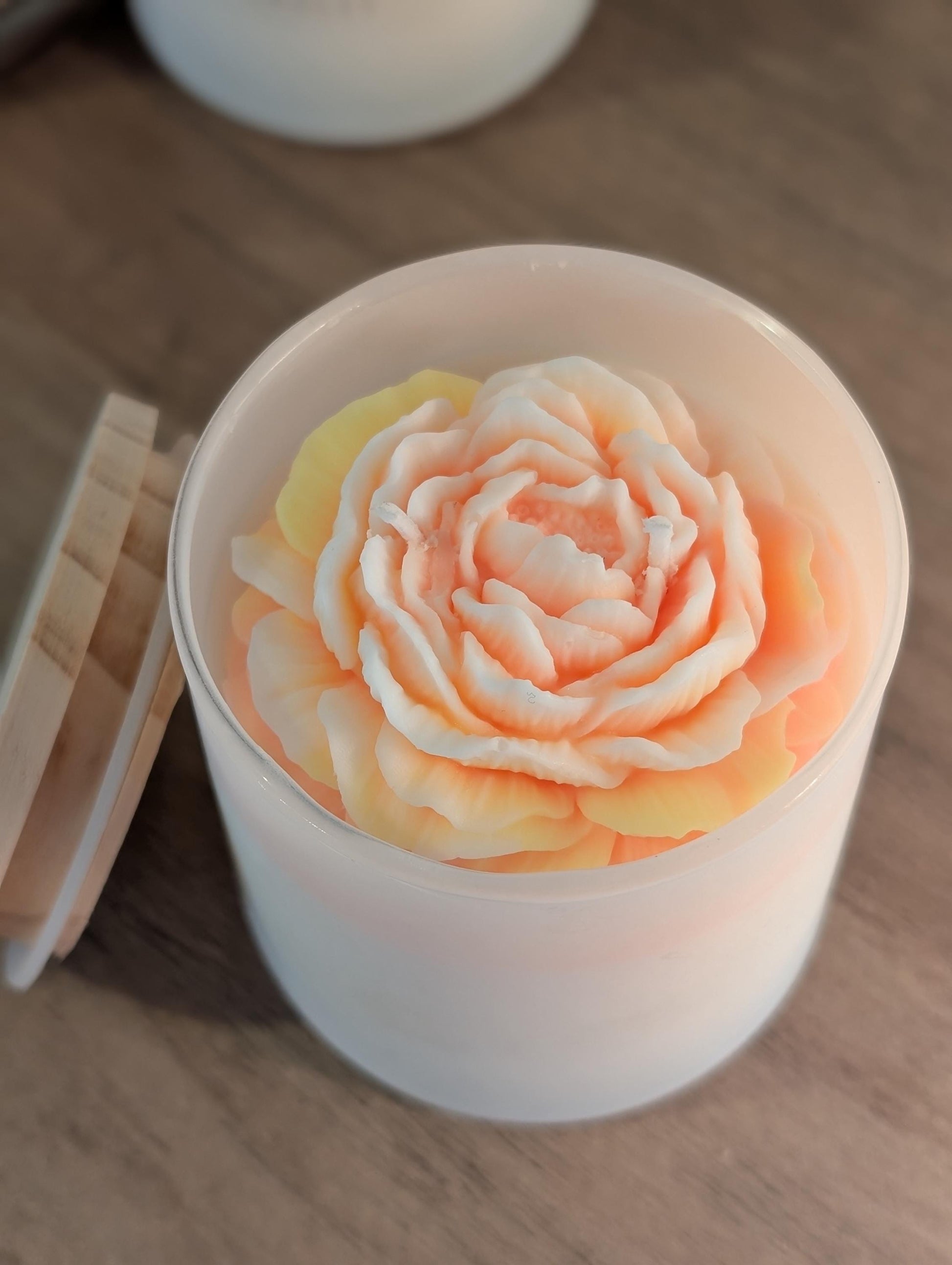 🕯️ Candle Details • Scent Name: Island Vanilla • Wax: 100% natural soy wax • Burn Time: Long-lasting, clean burn • Vessel: Frosted glass jar with lid • Design: Hand-poured floral wax top • Handcrafted in small batches